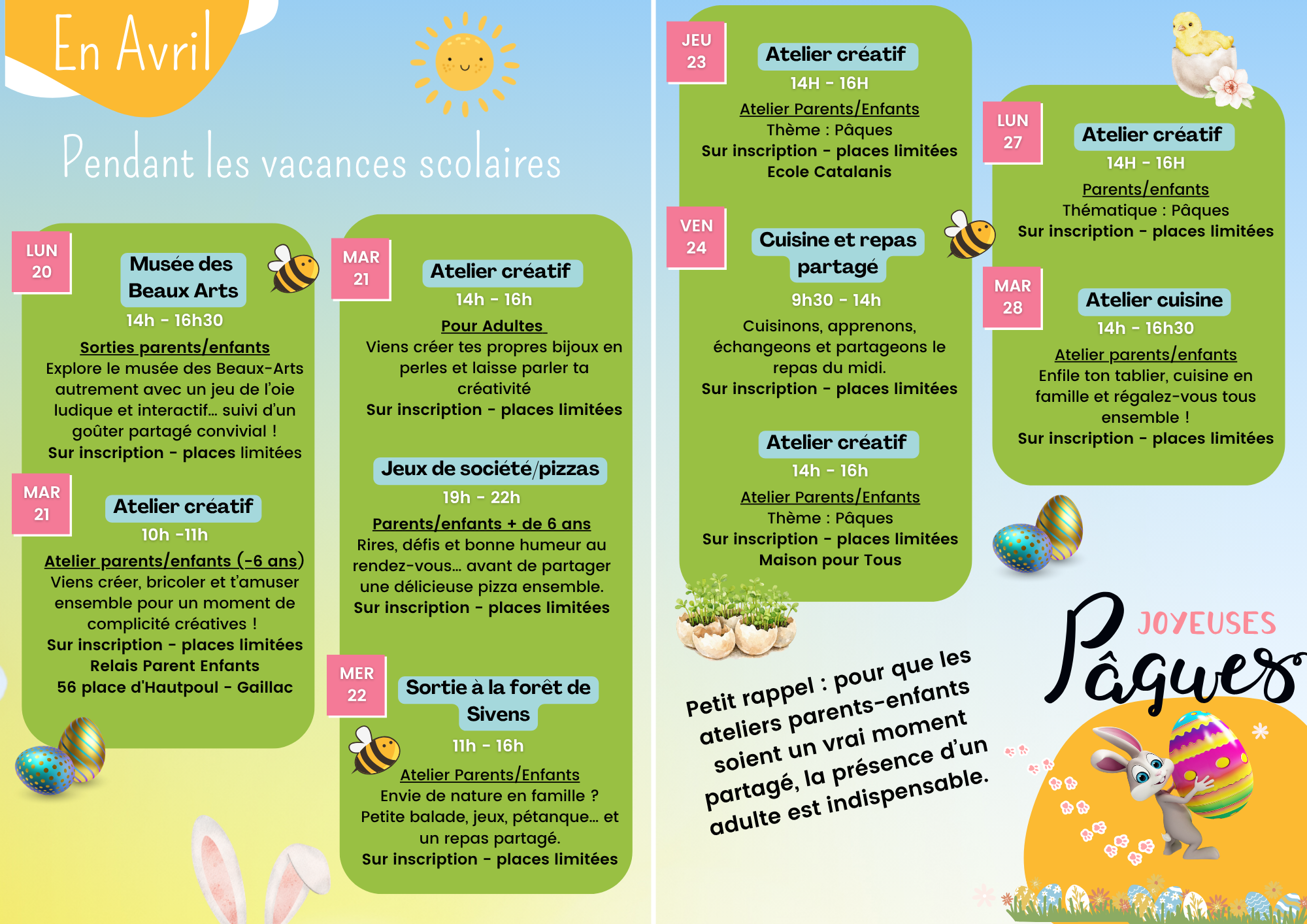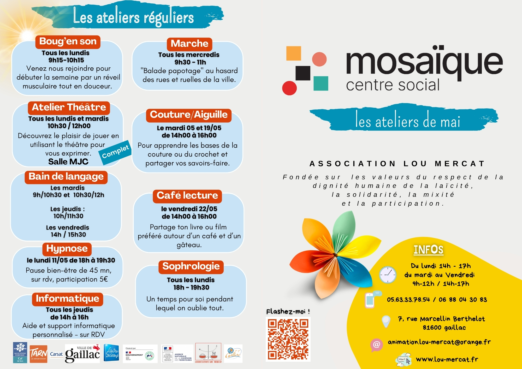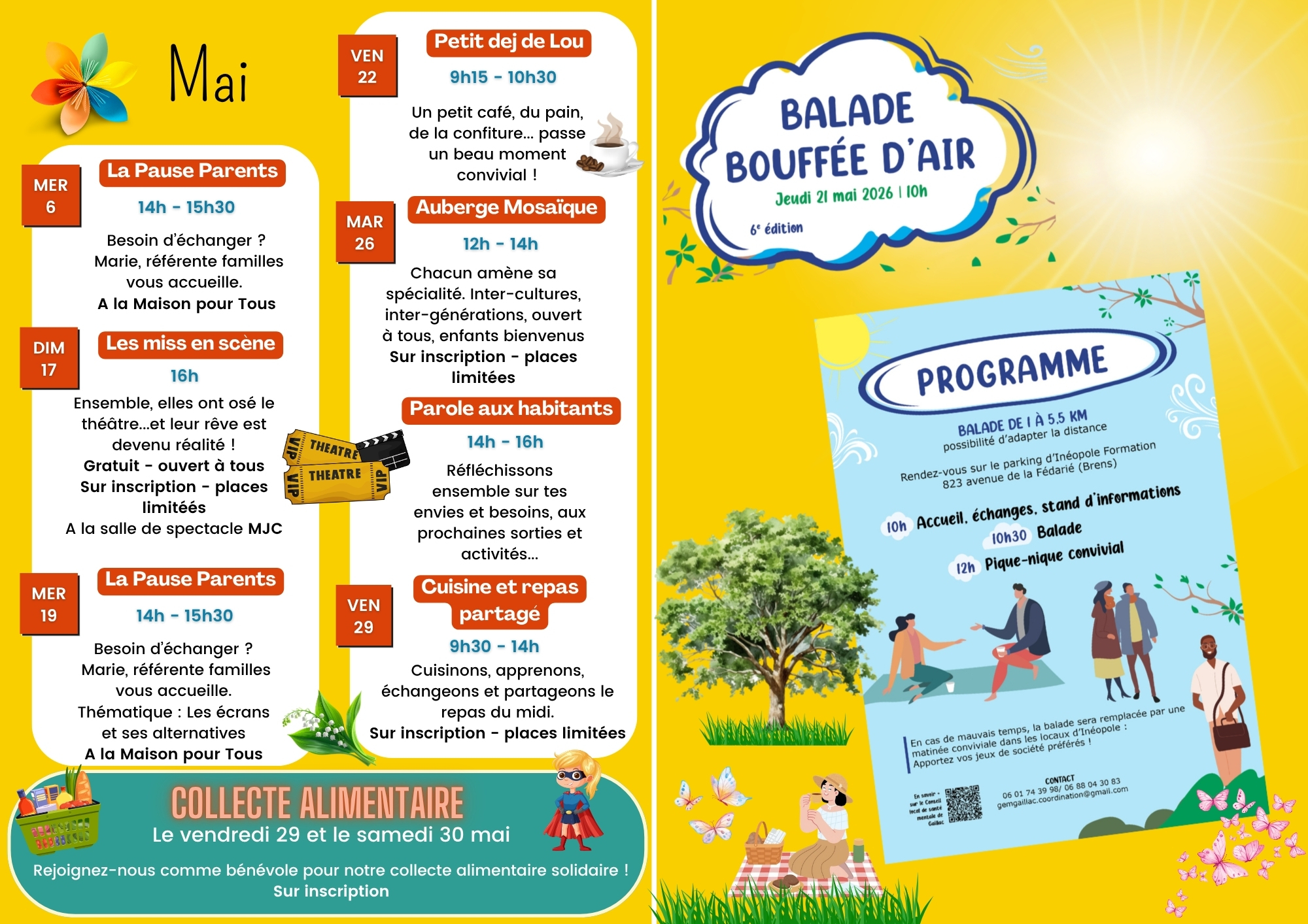 Un lieu où chacun peut trouver des activités adaptées à ses envies et à ses besoins : cours de théâtre pour s’exprimer en toute confiance, séances de gym et de sophrologie pour prendre soin de soi, ateliers de cuisine pour partager des savoir-faire, sorties en famille pour créer des souvenirs, marches collectives pour allier bien-être et convivialité, ou encore un projet de jardin pour lequel vous êtes invités à inventer les règles.